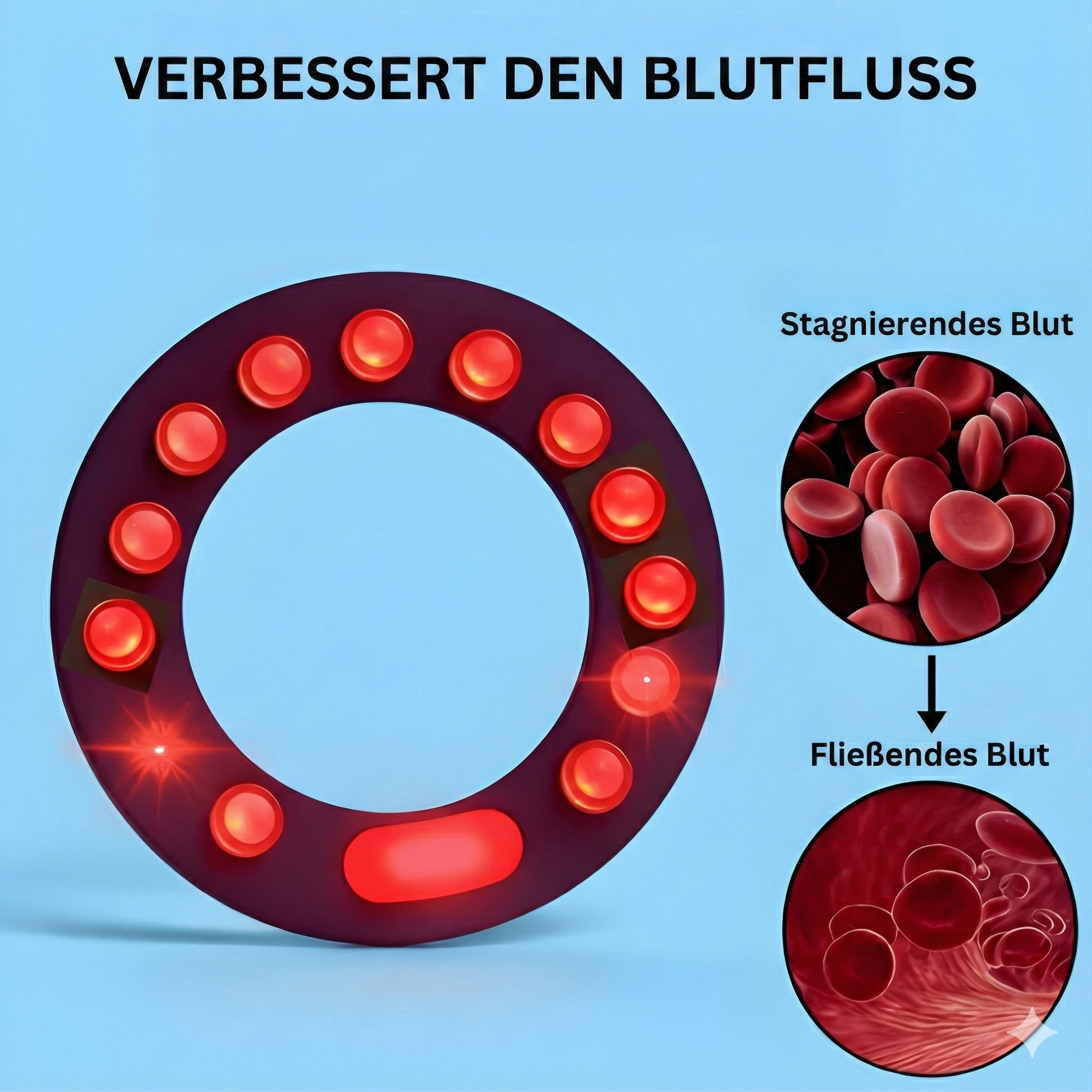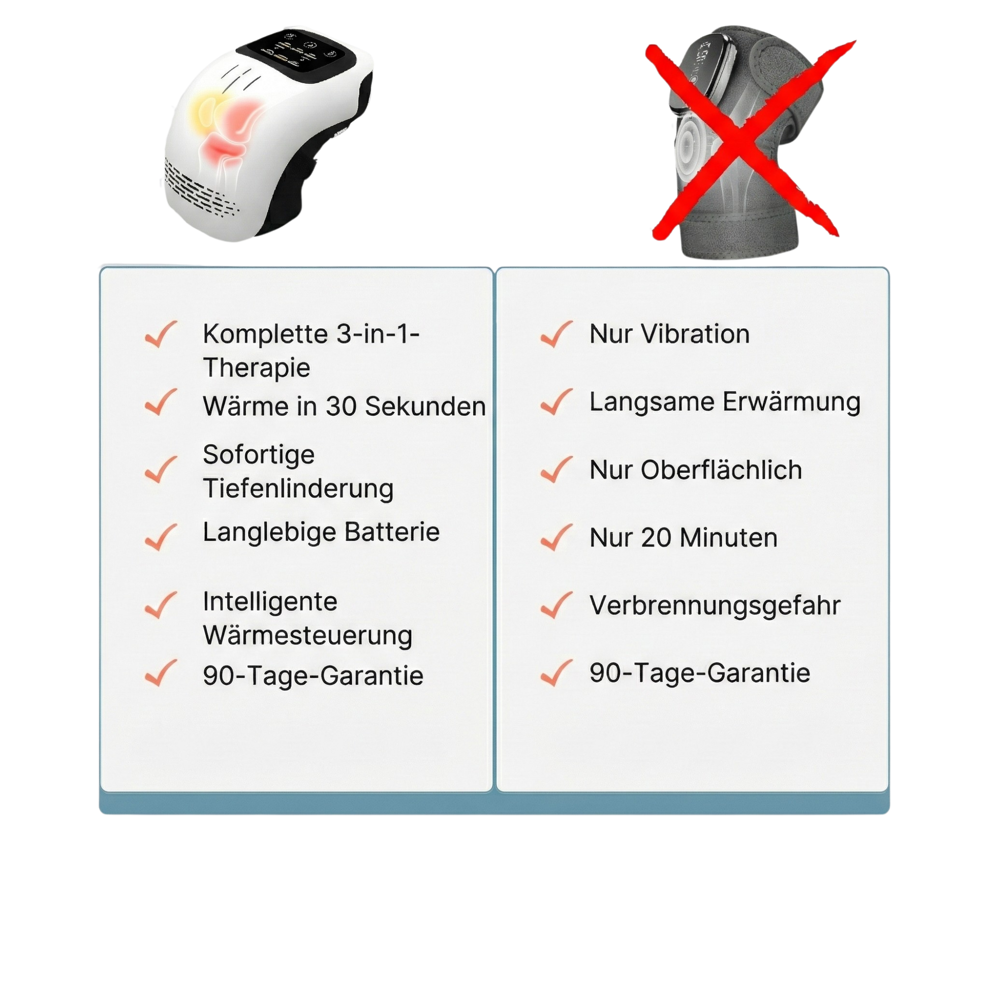 Die tiefenwirksame Vibration dringt in die Muskeln rund um das Knie ein und hilft ihnen, sich zu entspannen. Sie reduziert Spannungen, löst Steifheit und macht jede Bewegung flüssiger. In Kombination mit rotem Licht sorgt sie für eine umfassende Linderung.